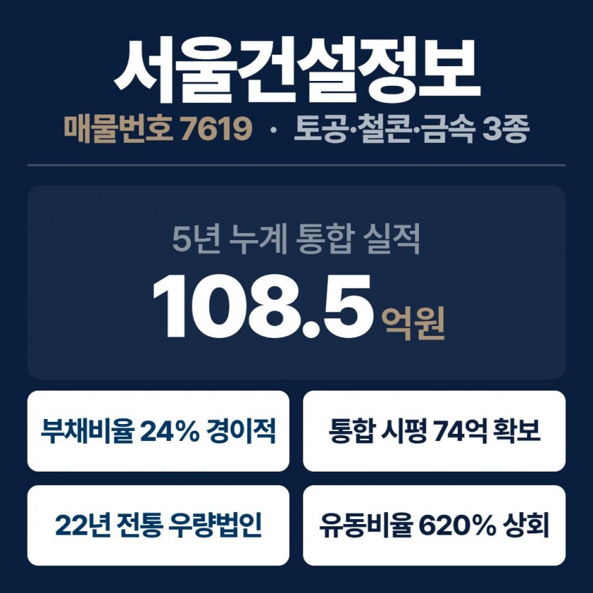 | 핵심 한줄 | 실인수 9,600만 원 · 기초 토목과 건축(창호)을 아우르는 올라운더 매물 |