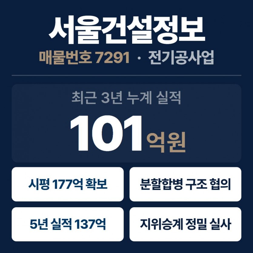 [매물 7291] 핵심 가치 요약 (전기공사업 양도양수 핵심 지표)
