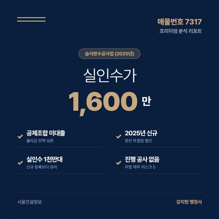 습식방수공사업 양도 (매물 7317) | 25년 신규, 조합 미대출, 실인수 1천만